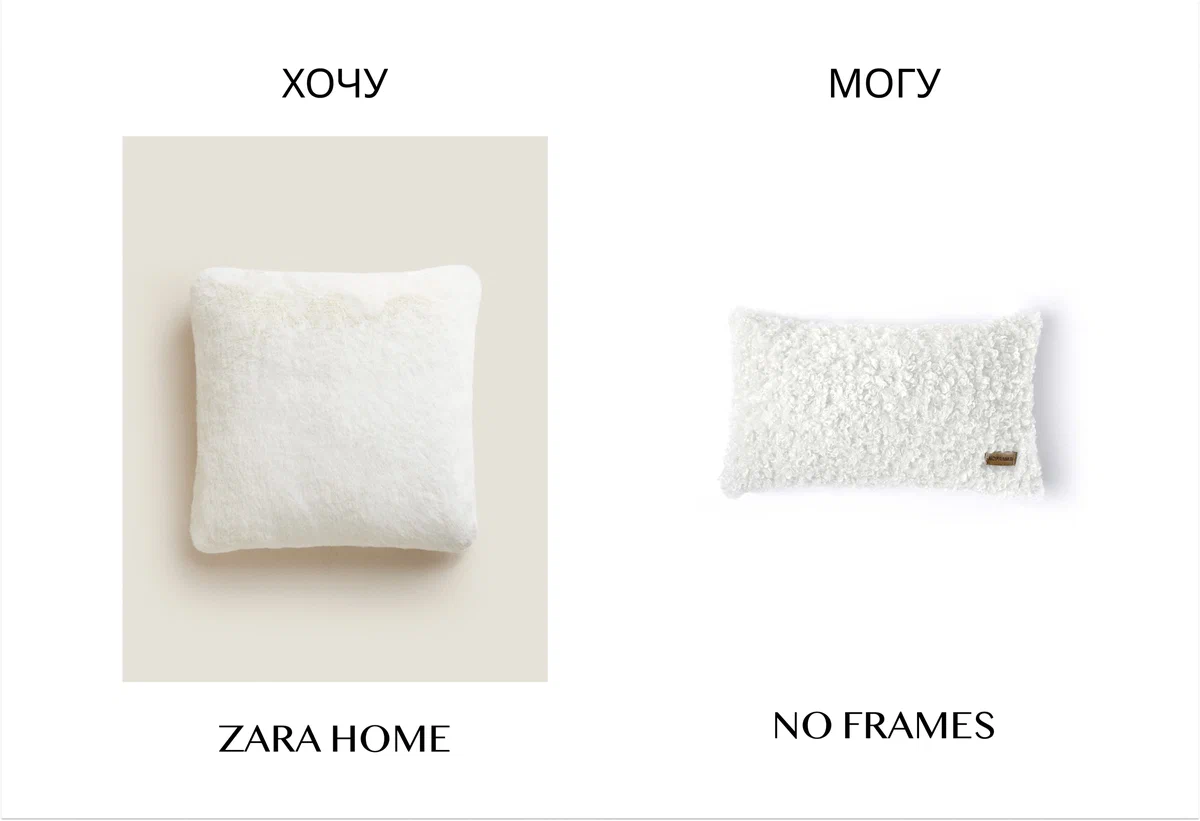 Кроме того, NO FRAMES – золотая середина для тех, кто хочет получить качество “Зара Хоум” за цену “Икеа”. Эта марка шьет декоративные подушки из прочных и качественных мебельных тканей, которые рассчитаны на серьезные нагрузки. Поэтому, такой предмет декора прослужит вам значительно дольше. А цена, несмотря на использование премиальных тканей, остается весьма демократичной и не сильно ударит по кошельку тех, кто привык покупать аксессуары для дома у шведского масс-маркета.