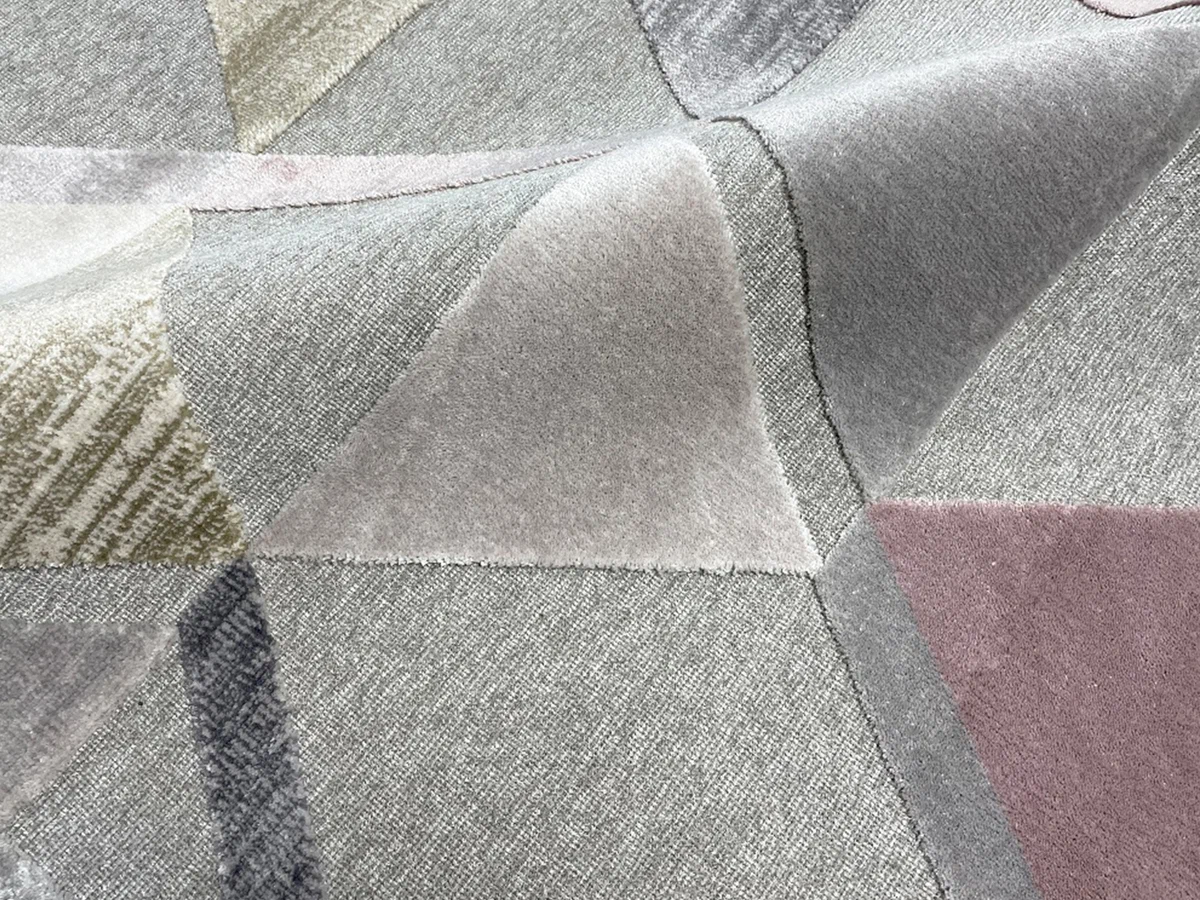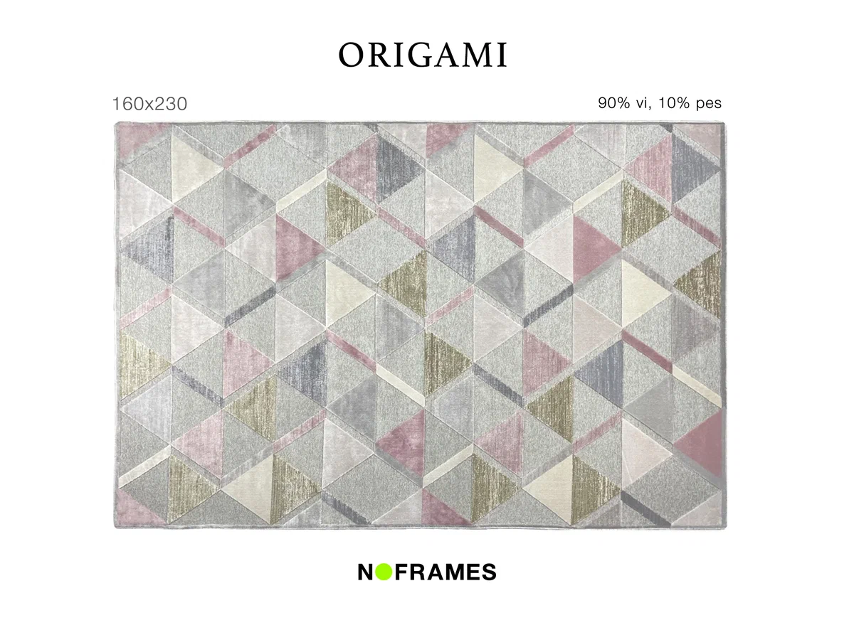 Если же вам больше по душе светлые оттенки и геометрические орнаменты, идеальным решением станет ковер Origami. Он на 90% состоит из вискозы, что делает его более плотным. Однако благодаря пастельным оттенкам и легкой, лишь местами “пушистой” текстуре, он не перегружает интерьер и не отвлекает внимание от ярких деталей, на которых хочется сделать акцент. Такой ковер из натурального материала прекрасно подойдет для детской комнаты, спальни и гостиной.