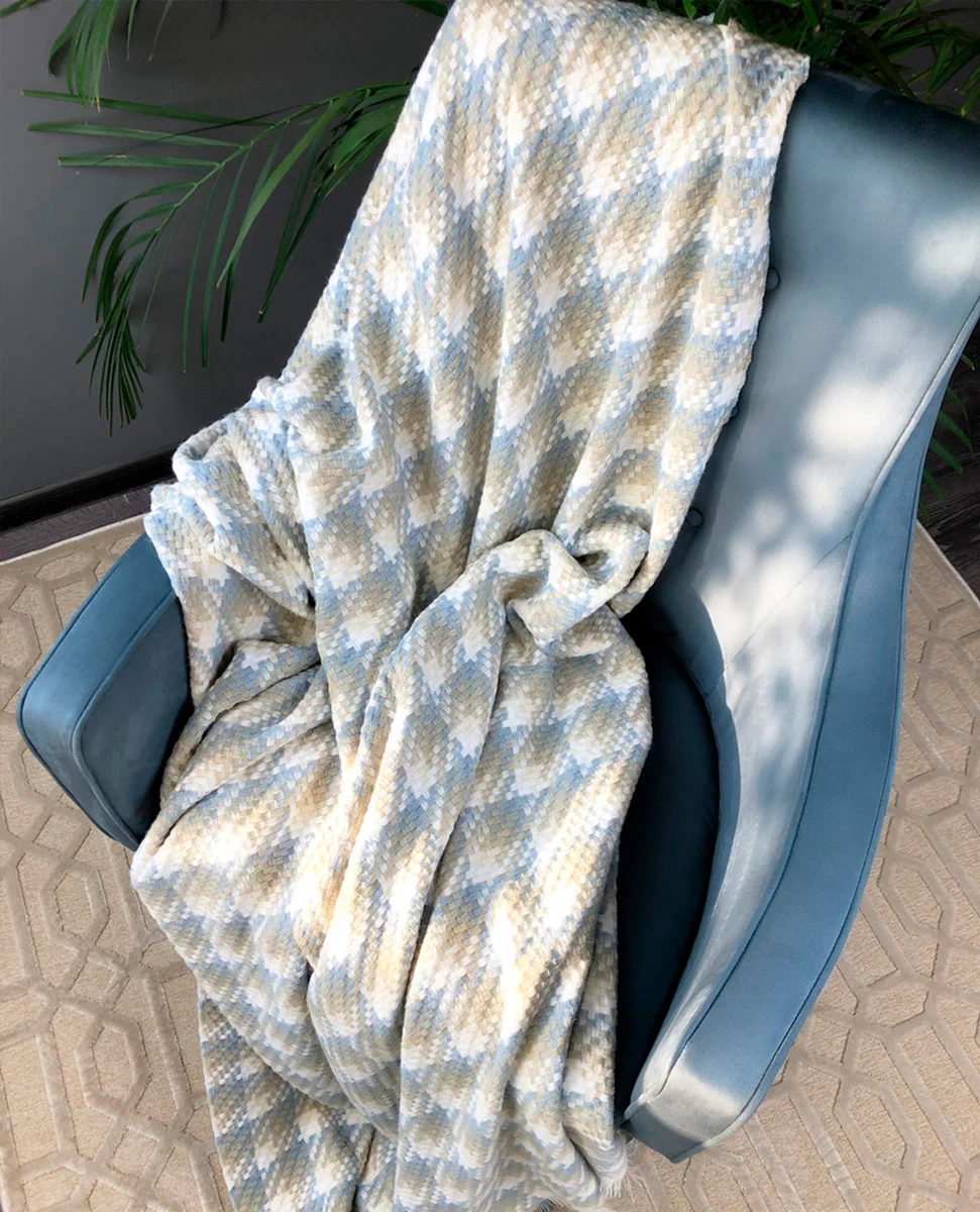 Например, пледы Paris и Napoli сотканы из очень мягкого материала – ацетатного волокна. Это искусственные нити, которые приятные на ощупь, хорошо держат форму и позволяют изделию надолго сохранить упругость. Кроме того, за такой тканью легко ухаживать. Достаточно лишь несколько раз смочить ткань в теплой воде с растворенным в ней средством для стирки, чтобы плед восстановил опрятный вид даже после долго использования.