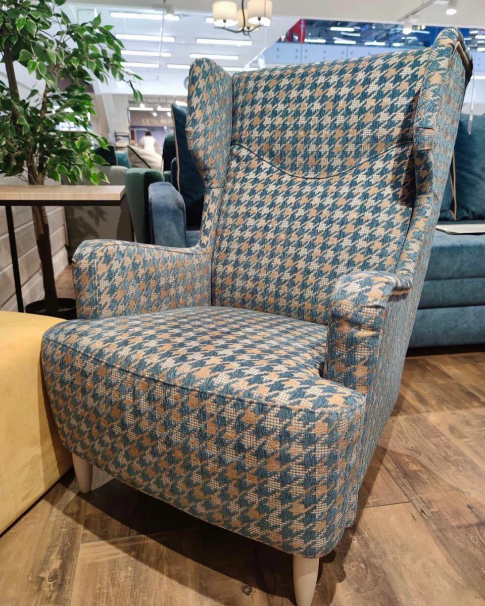 Вот, например, классическое кресло с “гусиной лапкой”. Сама форма такого кресла уже отсылает нас в старую Англию, а орнамент ткани дополняет этот интерьерный образ духом британской аристократии. При этом цветные, пусть и приглушенного оттенка, нити делают образ более современным, что позволяет креслу стать гармоничным элементом любого интерьера.