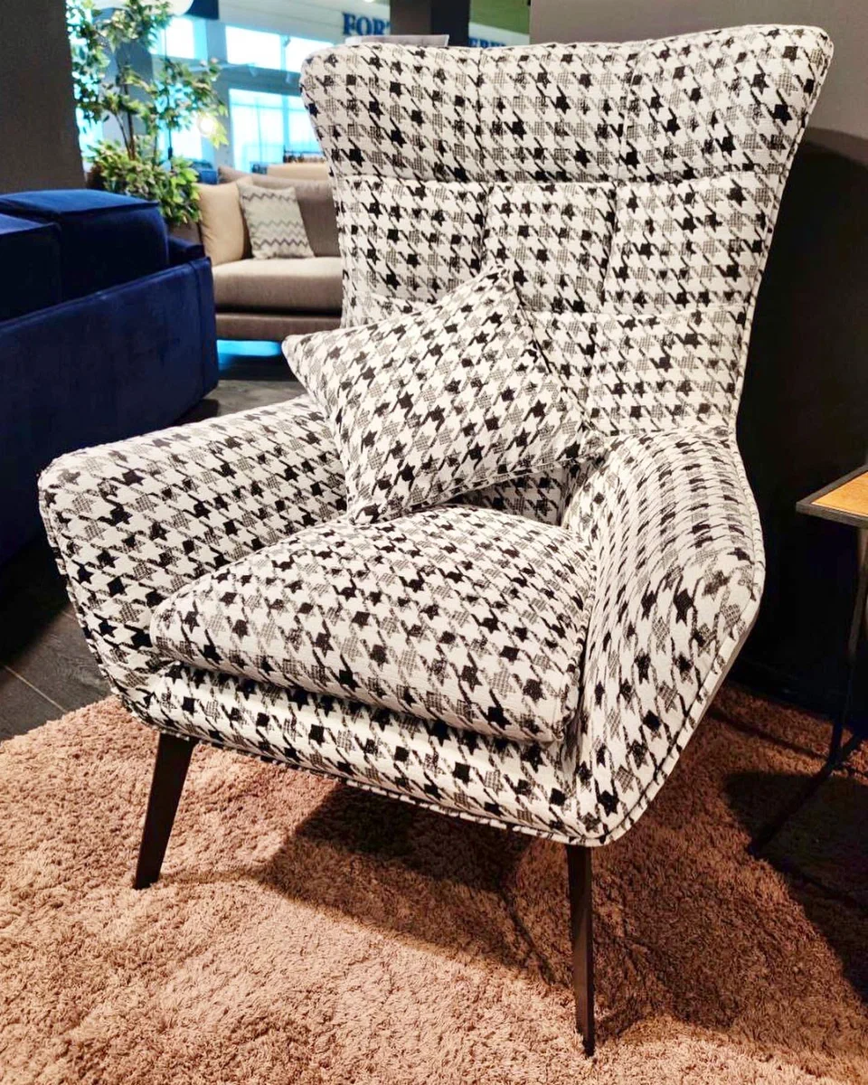 Сегодня “гусиная лапка” популярна не только в одежде, но и интерьере. Особенно выигрышно на мебели и аксессуарах этот узор смотрится в аранжировке бренда NOFRAMES в коллекции SALON. Сотканная по классической британской технологии ткань обладает теми же свойствами, что и 150 лет назад: качество, плотность, сдержанность, надежность. Кроме того, создатели коллекции разнообразили черно-белый орнамент более яркой цветовой палитрой, которая, тем не менее, сохраняет атмосферу чопорных, но роскошных именитых британских домов.